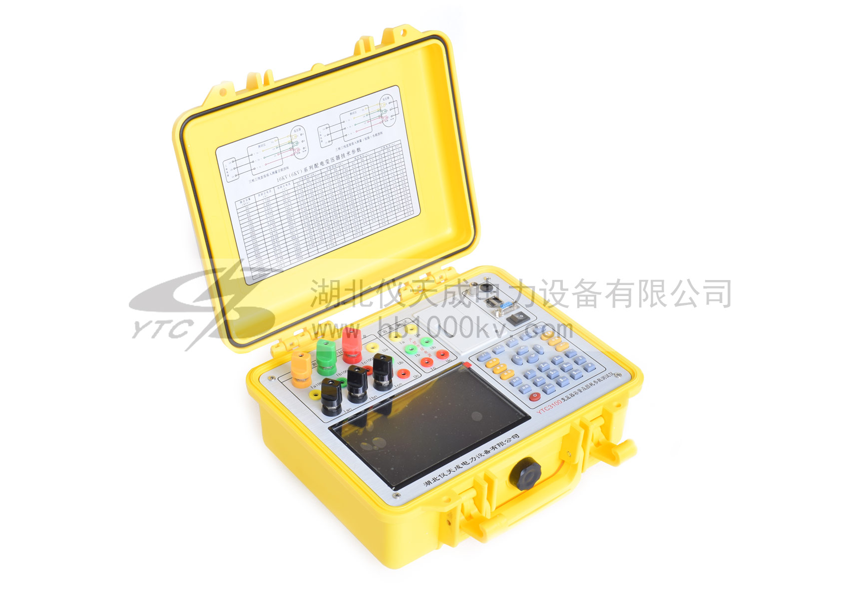 YTC3100變壓器容量及損耗參數綜合特性測試儀容量測試結果準確率高, 在測量變壓器容量和變壓器的短路損耗時不需要外接三相測試電源及調壓器、升流等輔助設備,簡化了接線,大大提高了工作效率。它一種設備相當于四種設備:有源變壓器容量測試儀+變壓器損耗參數測試儀+諧波分析儀+示波器。它可對各種變壓器的容量、空載電流、空載損耗、短路損耗、阻抗電壓等一系列工頻參數進行準確的測量,并能測量空負載試驗時的電壓、電流失真度和諧波含量,還可以進行矢量分析。它以大屏幕彩色液晶作為顯示窗口,菜單操作并配有漢字提示,集多參量于一屏的顯示界面,人機對話界面友好,使用簡便、快捷,是各級電力用戶的采購產品。