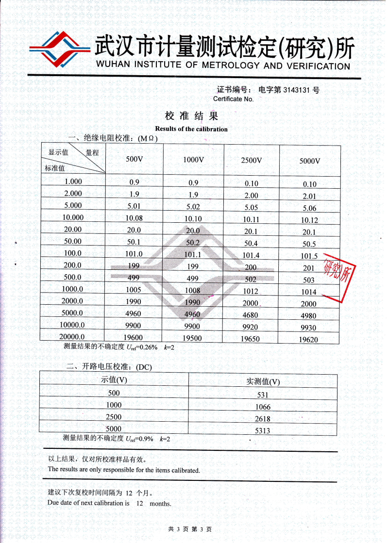 | 5000V | 20000 | 1-1000 | ⑽ | 起始為1MΩ |